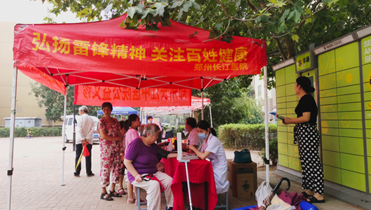 为满足广大社区居民的健康需求,提高对自身健康情况的认知,让社区居民们在自家门前就享受到免费医疗保健服务,2019年8月4日,郑州长江中医院联合河南电视台公共频道《一拍即合》栏目,走进通和明镜台社区,为社区居民进行免费义诊活动。